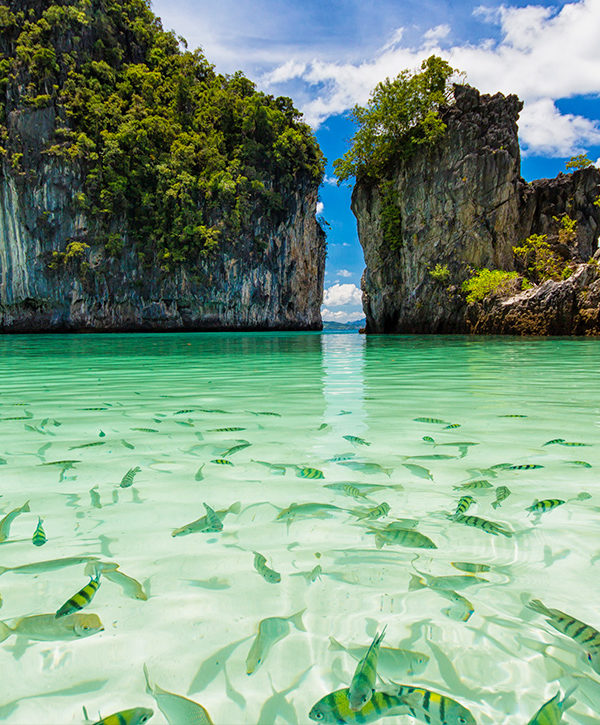 Explore Thailand’s island paradise in Krabi with a visit to Hong Islands. Belonging to the National Marine Park, this stunning four-island by speedboat. With a mesmerizing backdrop of Phang Nga Bay, the islands have rightfully earned their title as some of the most beautiful in Thailand. Hong is literally translated as “room” from Thai — and for a reason: the islands are secluded and in the centre is a lagoon completely surrounded by cliffs. You will be able to enjoy complete privacy, crystal clear water and sunny sandy beaches away from crowds of tourists so you can truly relax.